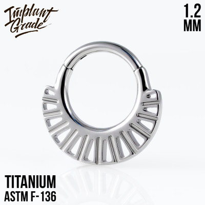 Кольцо-кликер из титана марки ASTM F-136, украшено фианитами Зеркальная полировка